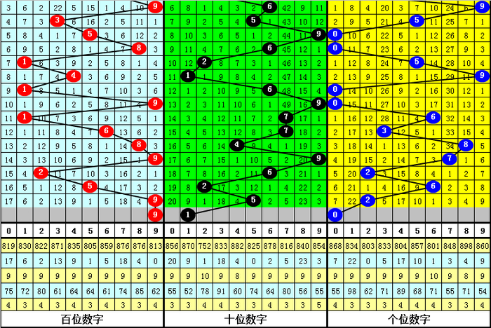 跨度分析:在第250期同期历史奖号中,号码跨度012路比为9:6:8,奇偶比为15:8,大小比为14:9,跨度开出频次分别为:跨度3、5出现5次,跨度6、7出现3次,跨度4、8出现2次,跨度1、2、9出现1次,跨度0出现0次,本期关注0路跨度出现,一码跨度参考9。