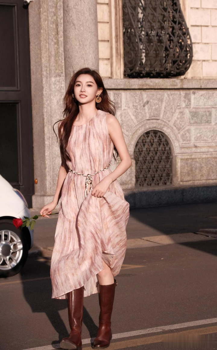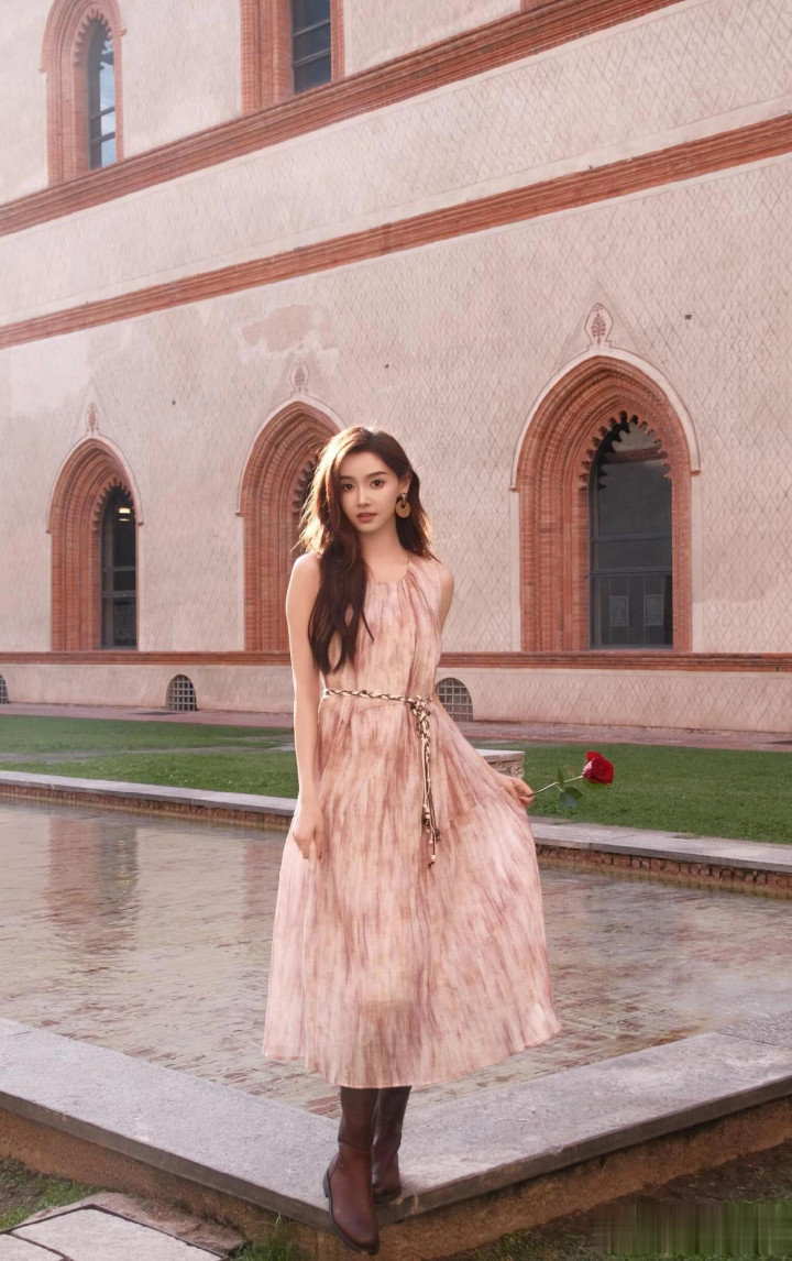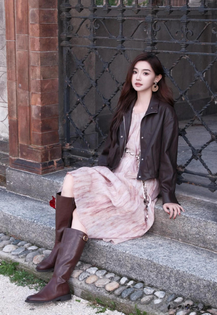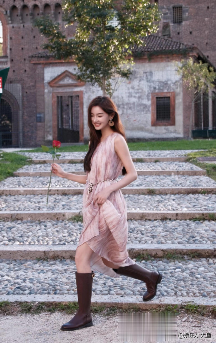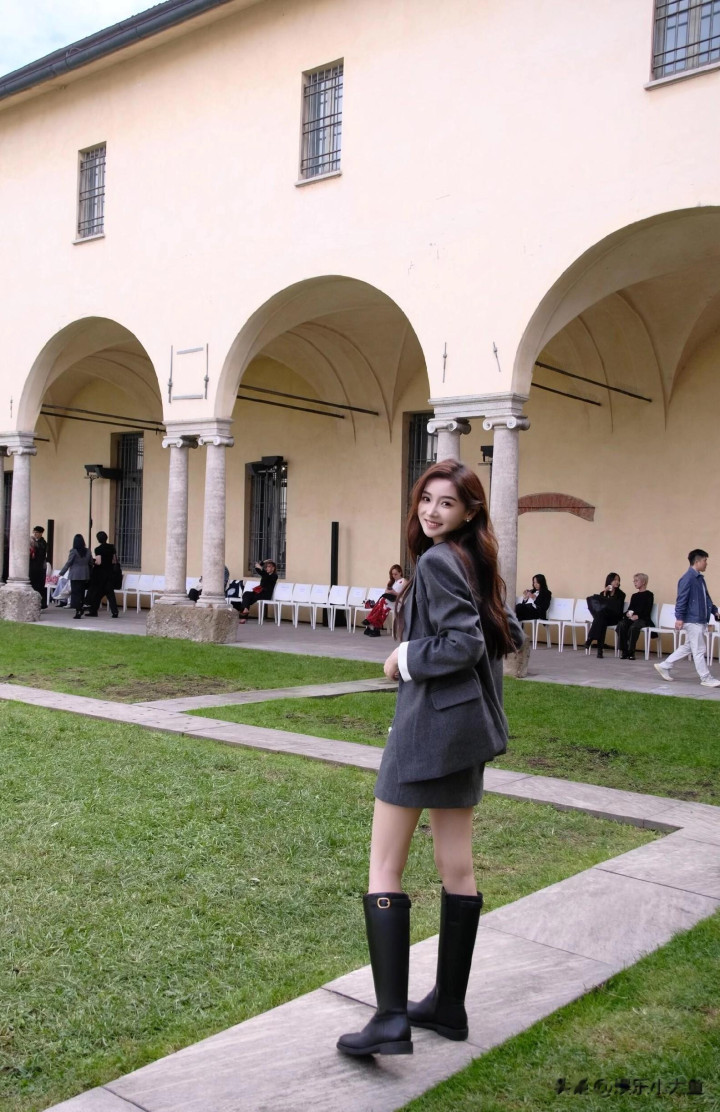 主持人金佳悦出席米兰时装周, 穿灰色西服套裙, 美得闪闪发光