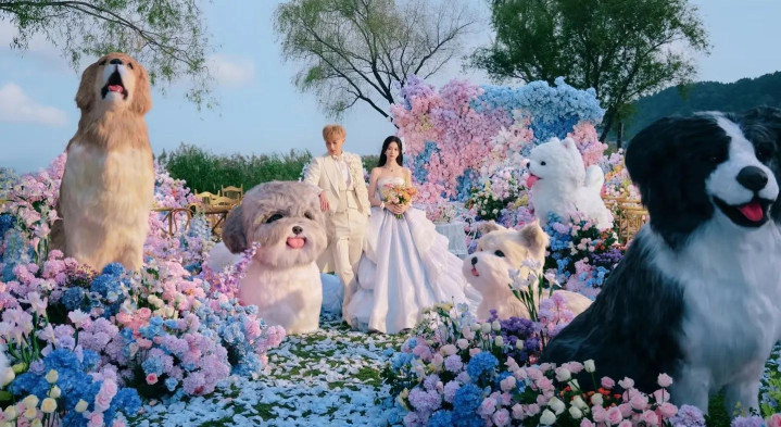 而且婚礼现场的布置分为室内和室外,室外的部分被鲜花围绕,全是女孩子们喜欢的颜色,而且黄子韬还准备了很多超大个毛绒小狗,用心程度可见一斑。