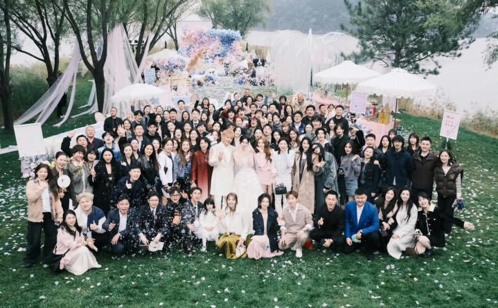 在大合照里面有一个身影,那就是站在黄子韬身边的黄妈妈,她可是罕见亮相的,这次儿子婚礼无论如何也得出镜。