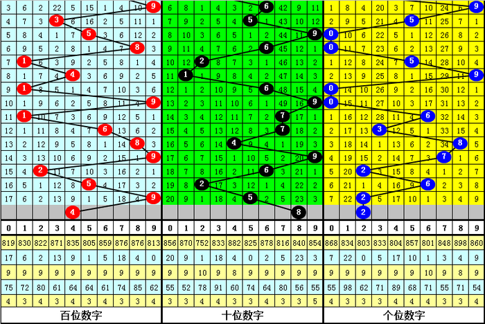 二、百位分析:上期开出号码9,前10次号码9出现之后下期分别开出号码:7004858312,其中号码大小比为4:6,基本相当;奇偶比为4:6,基本持平;012路比为3:3:4,1路号码走温。本期参考号码:4。