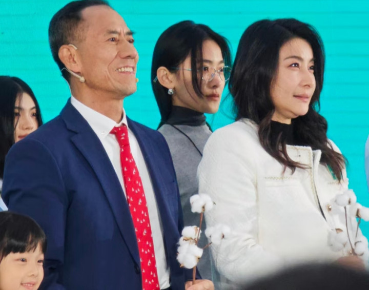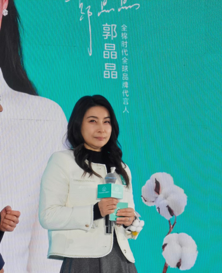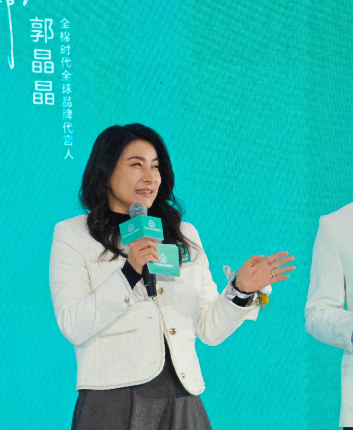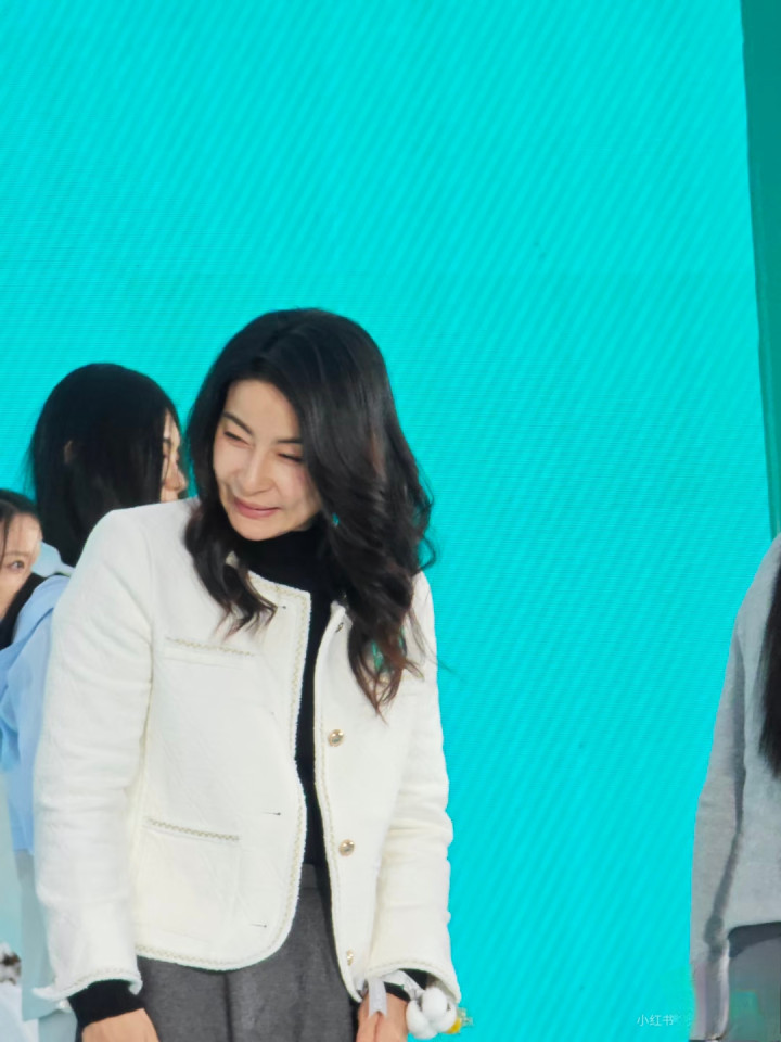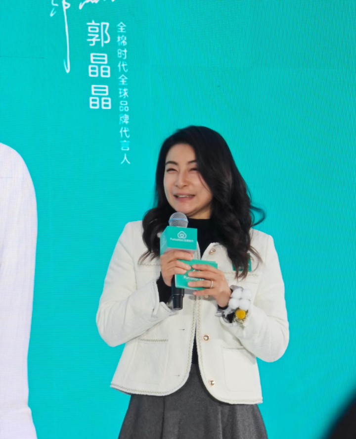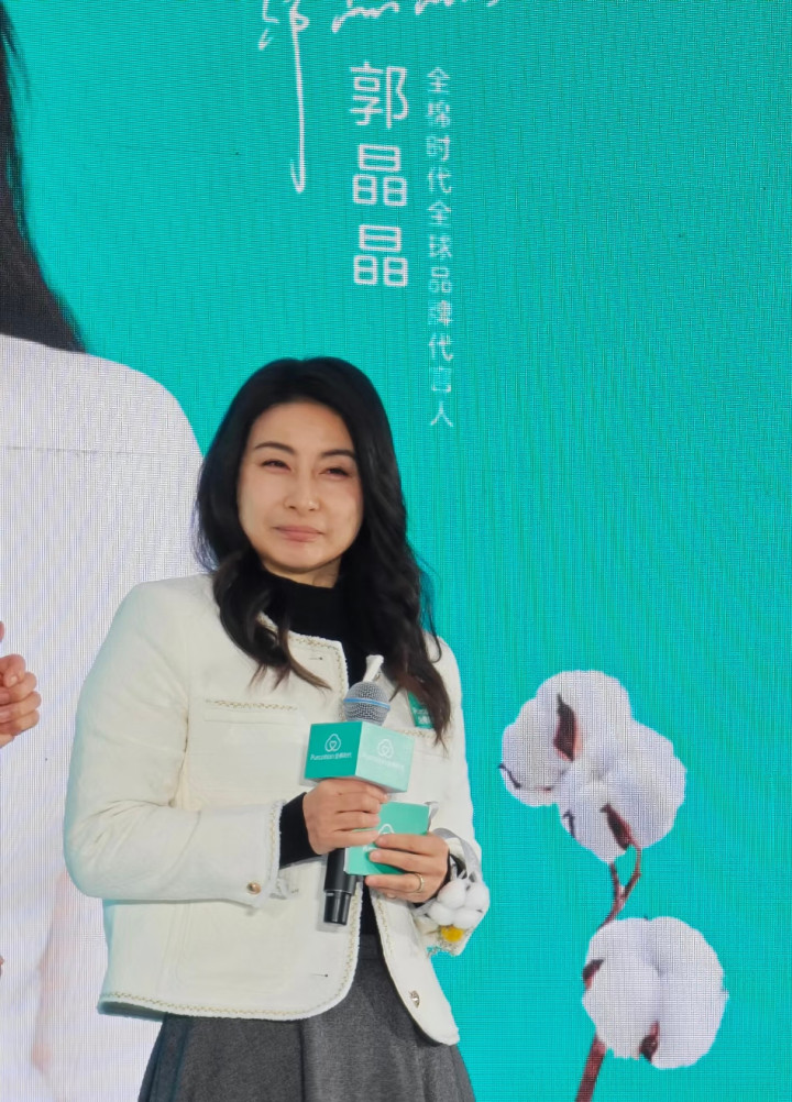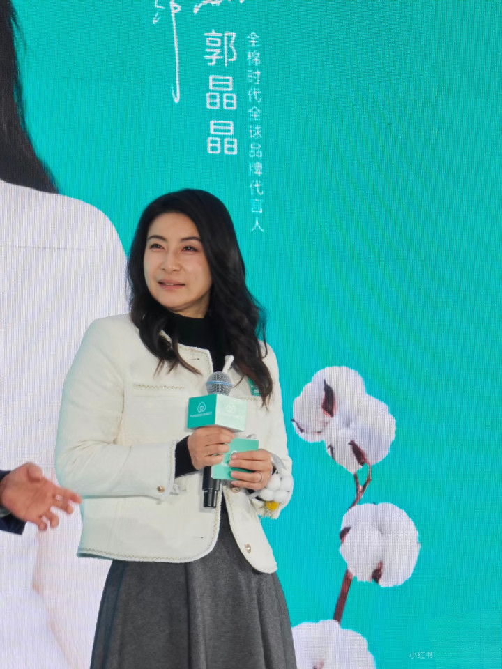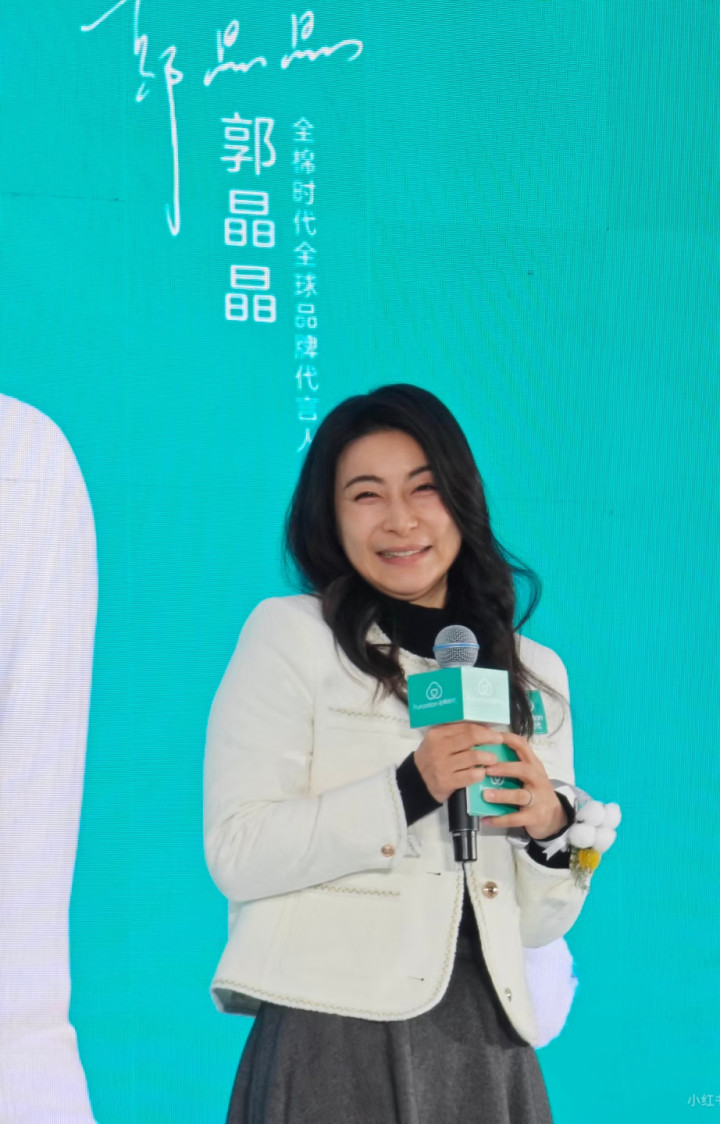 郭晶晶全棉时代活动, 白外套配灰裙波浪卷发, 气质优雅美得好高级
