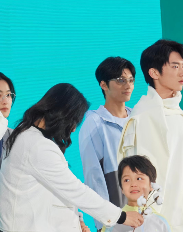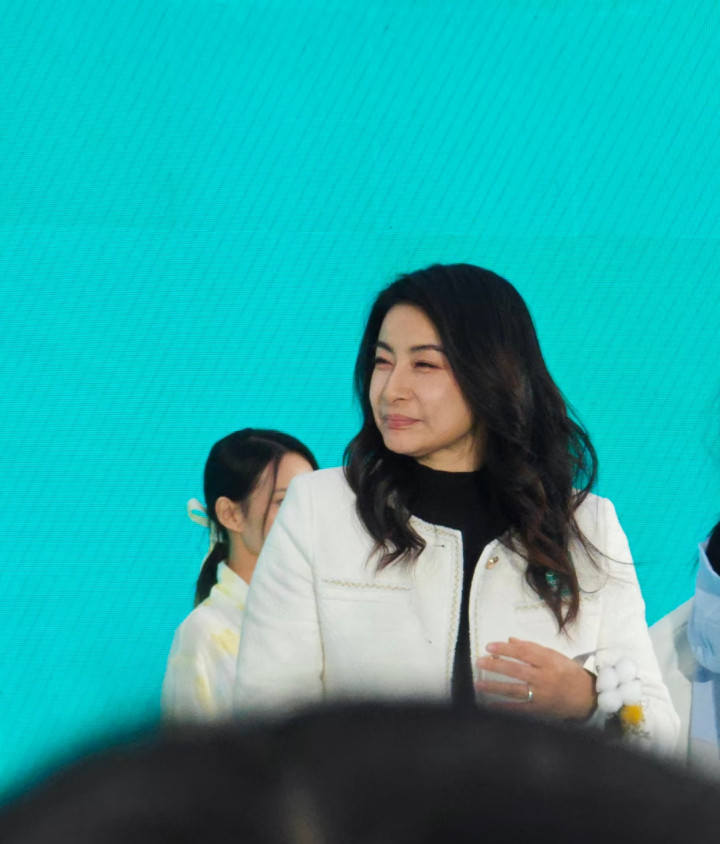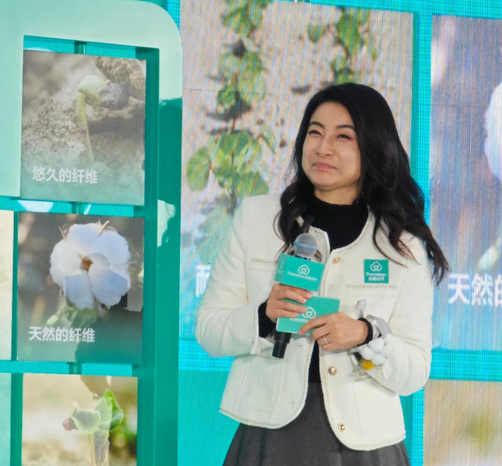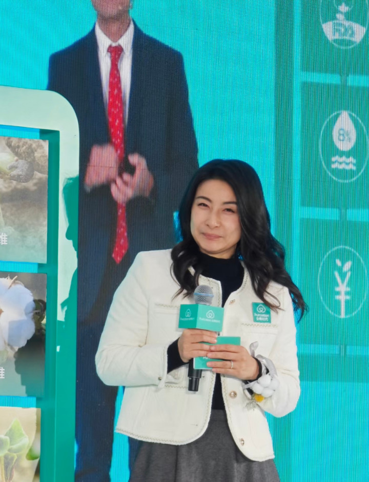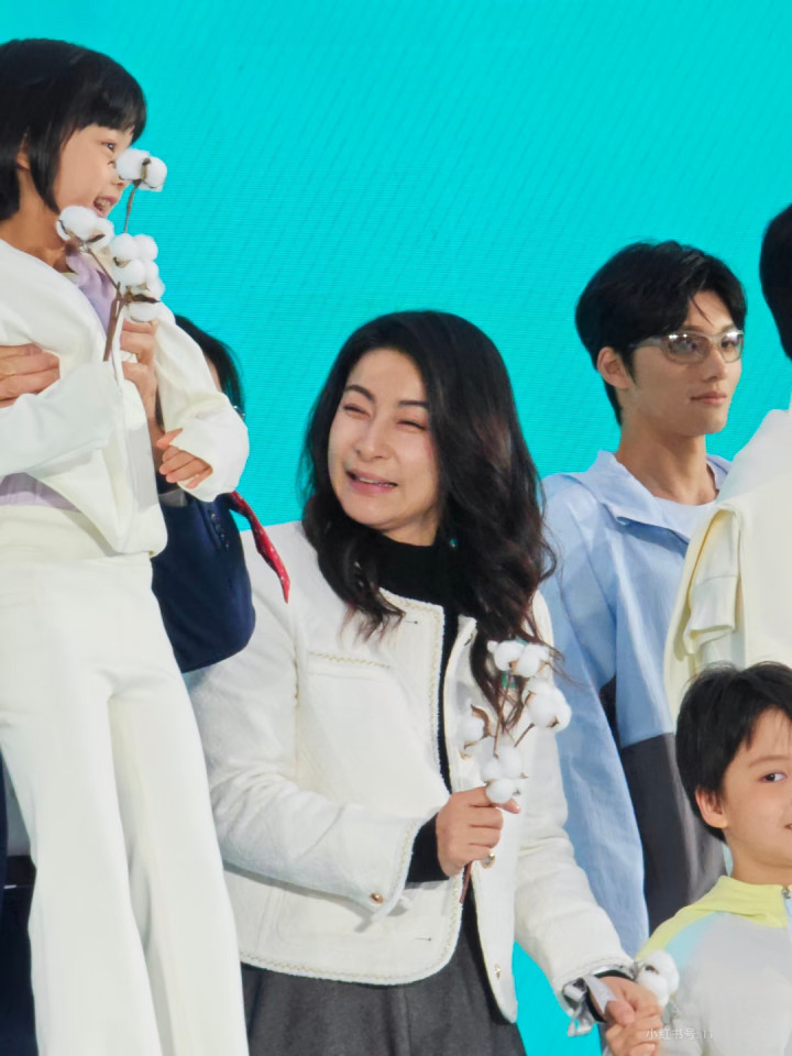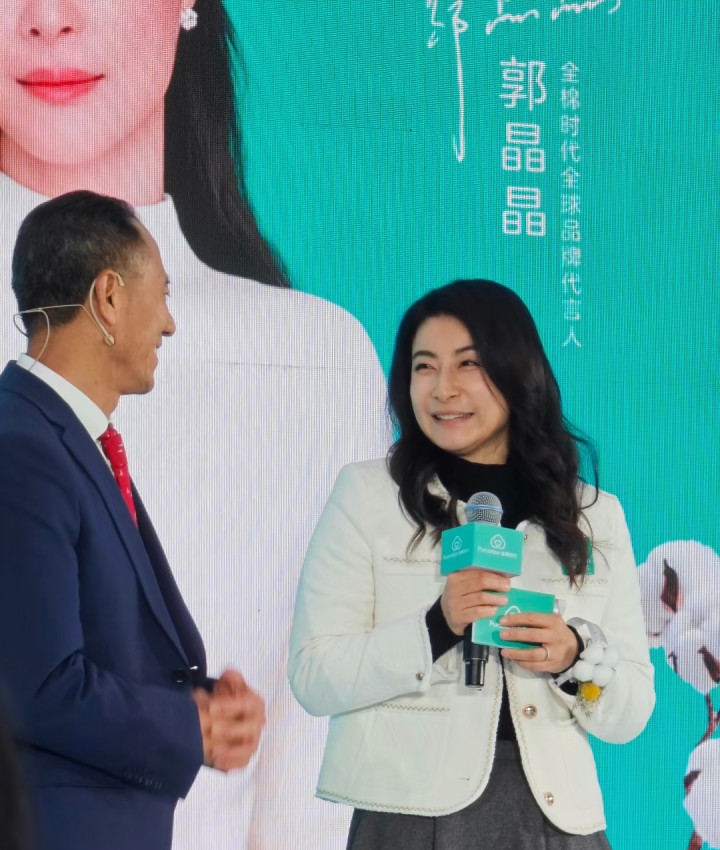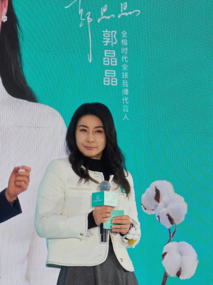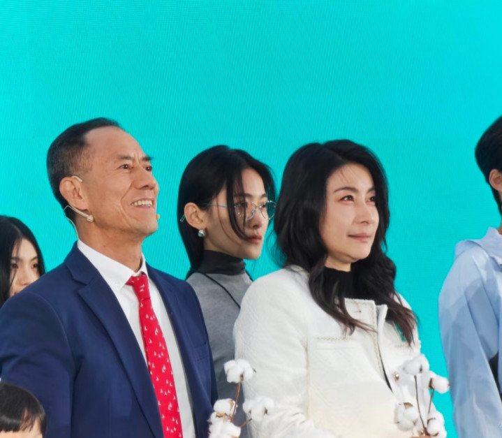 郭晶晶全棉时代活动, 白外套配灰裙波浪卷发, 气质优雅美得好高级